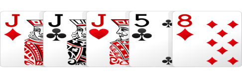 Three of kind memiliki 3 angka yang sama misalkan J J J 5 8